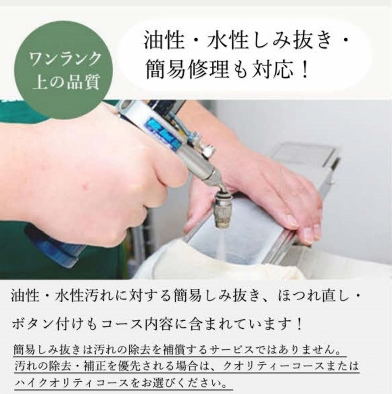 ■標準のクリーニングに加えて、簡易しみ抜き(油性・水性処理)・簡易修理付き!